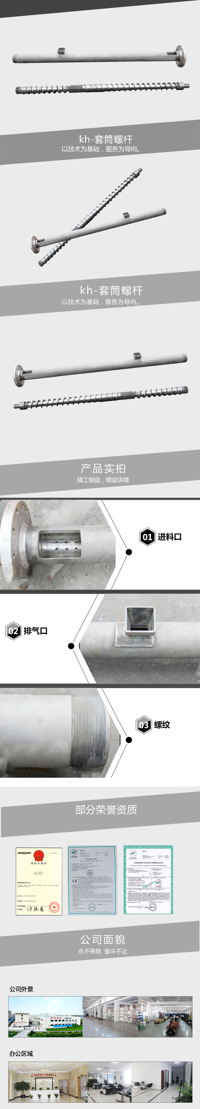 用途:塑料造粒機(jī)螺桿可加工多種熱塑性塑料,主要供ABS? PP? PS? PE? PC? PP-R? PPO? PET? ABS+PC? POM等塑料塑化造粒。 特點: 1:螺桿、機(jī)筒采用38CrMoAL材料制作,經(jīng)調(diào)質(zhì)、氮化、等多種處理工藝,根據(jù)不同塑料的特性,設(shè)計不同螺桿,螺桿進(jìn)料口噴有合金材料,提高了螺桿的使用壽命。 2:螺桿經(jīng)過多年研發(fā)設(shè)計。 3:提高了產(chǎn)能、增強(qiáng)了塑化效果。 4:增加了物料的混合效果和塑化效果,受熱均勻,產(chǎn)量高,螺桿使用壽命長。